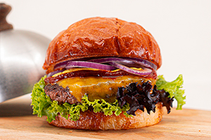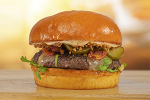 054 Le Forestier Rindfleisch Burger mit Tilsiter Käse, Pilzen, Rucola und Rotwein-Schalotten-Mayonnaise