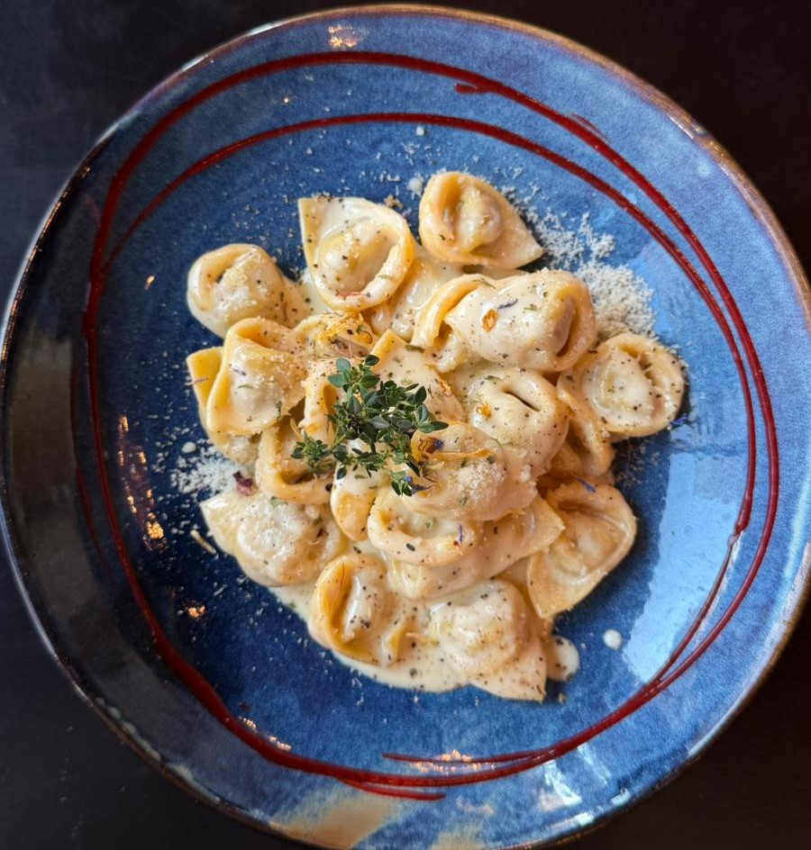 TORTELLI Hausgemachte Tortelli gefüllt mit Schweinefleisch, serviert mit Parmesancrème