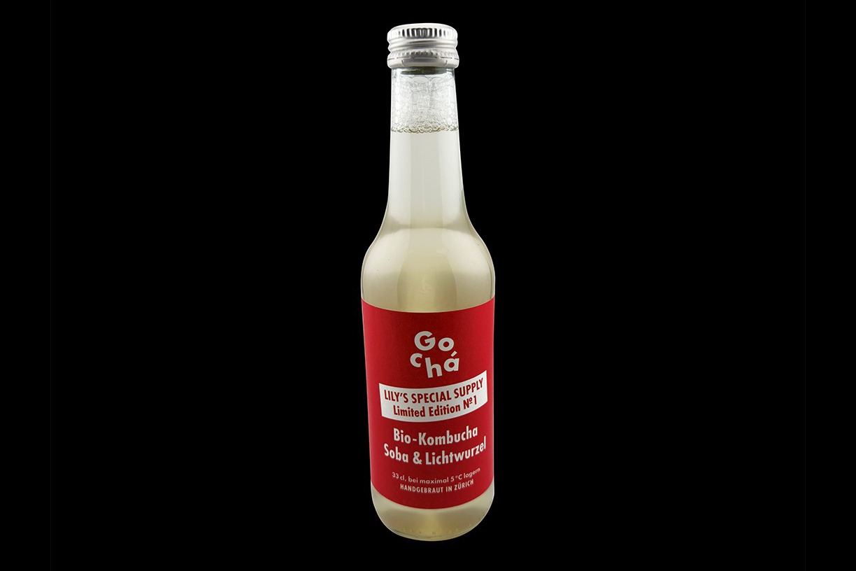 A1 GOCHÁ KOMBUCHA X LILY’S <0.5% 3.3 Dl Rohes Kombucha aus Bio-Buchweizen, Demeter Lichtwurzel und Grüntee für uns von Gochá aus Zürich hergestellt