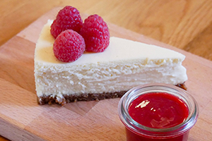 200 OMG Cheese Cake Spekulatius, Frischkäse und ein Hauch weisser Schokolade! Das Ganze unter einem köstlichen Coulis aus frischen Himbeeren