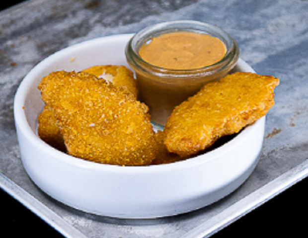 Vegan Chic Nuggets (5 Stück) Gebratene Veggie Nuggets aus Sojabohnen mit einer Sauce deiner Wahl