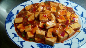 116 Mapo Tofu In Wok mit Zwiebel und frischem Tofu gekocht