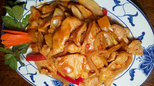 308 Poulet mit Zwiebeln Im Wok gebraten