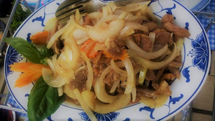 204 Rindfleisch mit Zwiebeln Im Wok gebraten